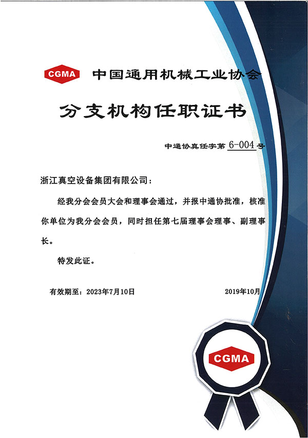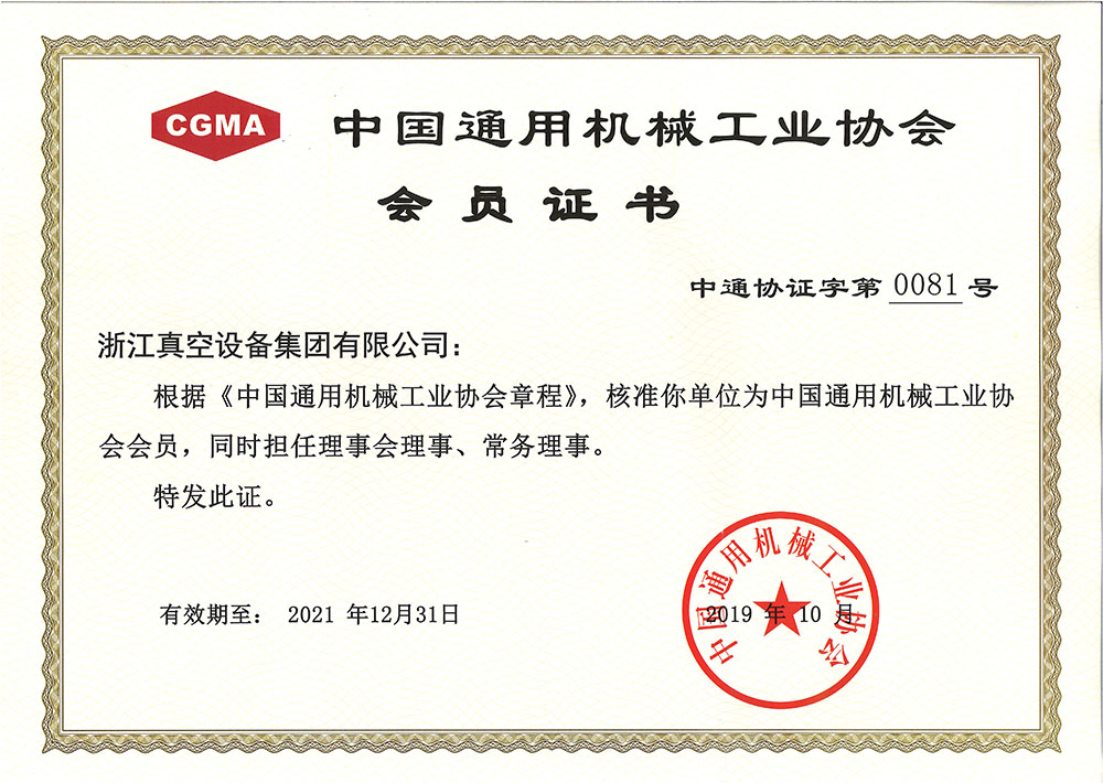 中國通用機(jī)械工業(yè)協(xié)會會員證書